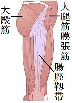 1、大腿の外側についている大腿筋膜張筋と腸脛靭帯の緊張があります。