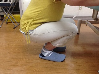 来院したきっかけは階段の上り下りやひざを深く曲げた時の違和感でした。
